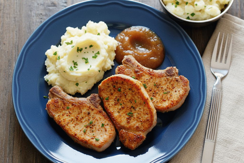 Keywords:pork chops and applesauce, easy pork chop recipe, homemade applesauce, family dinner ideas, comfort food recipes