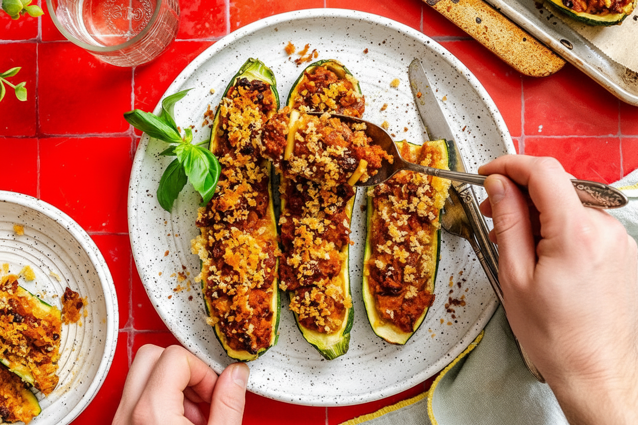 Pat your zucchini boats dry. Now, pack that filling in tight. Top it with buttery panko crumbs for a crunch. This texture mix matters. It makes every bite interesting.