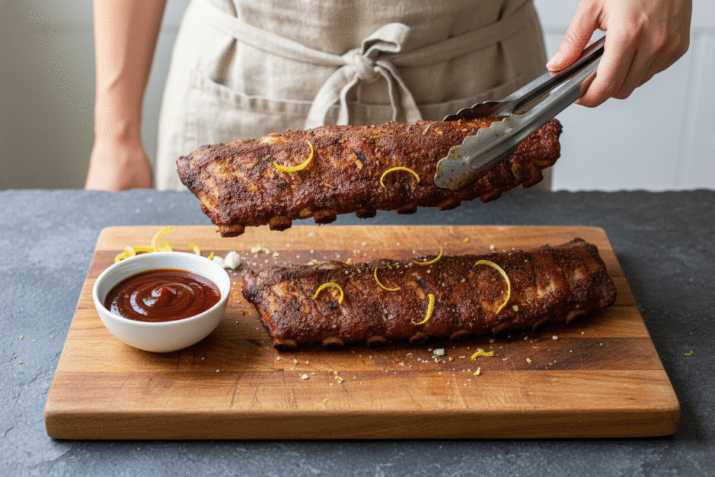 I asked for her secret right away. She whispered, “Vinegar and lemon zest.” It sounded strange. But it works. The vinegar makes the meat very tender. The zest adds a sunny, happy flavor. It matters because it turns good ribs into great ones.